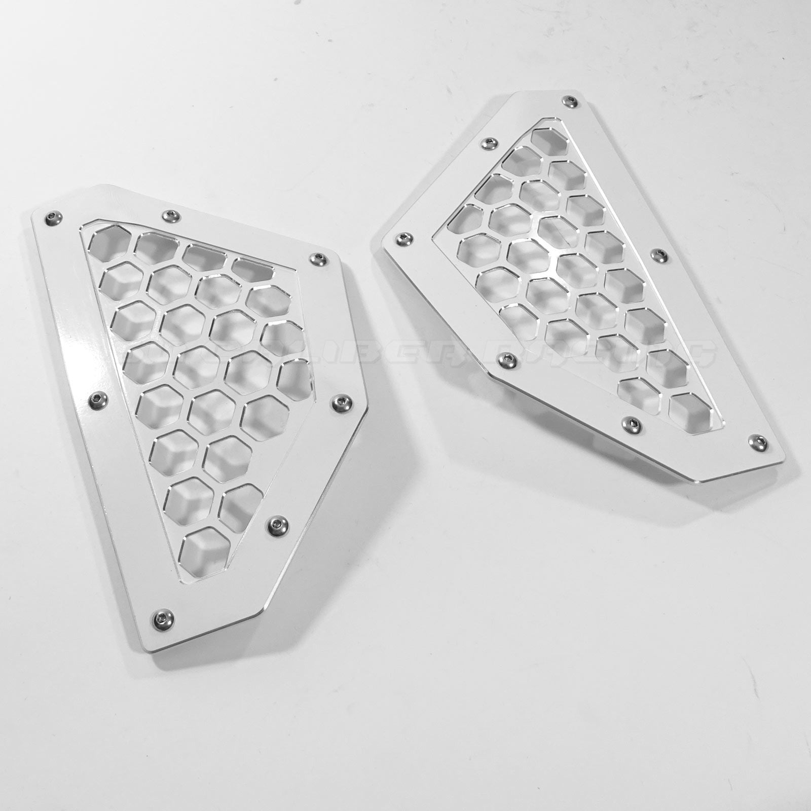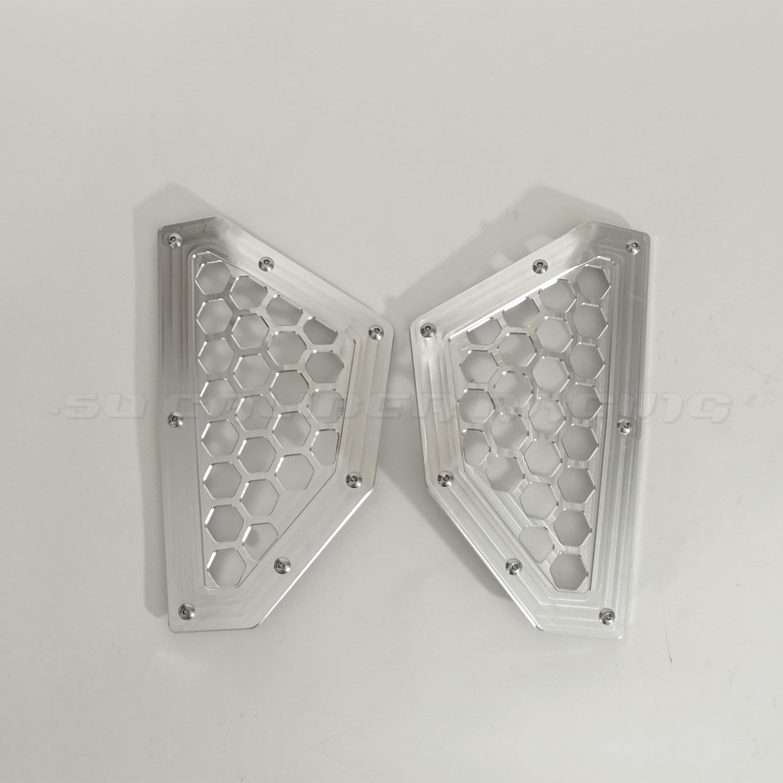 Add a unique look to your Can-Am X3 with our custom CNC billet aluminum rear grill bezels. Fits in the body panel at the rear of the car, and transforms the look of your car drastically. Machined from 6061 billet aluminum, powdercoated, then a relief engraving process afterwards creates a two toned effect that you can't get anywhere else. If you want to stand out from the crowd this is the grill for you. Includes stainless steel hardware for a quick and easy installation. Available in several colors.