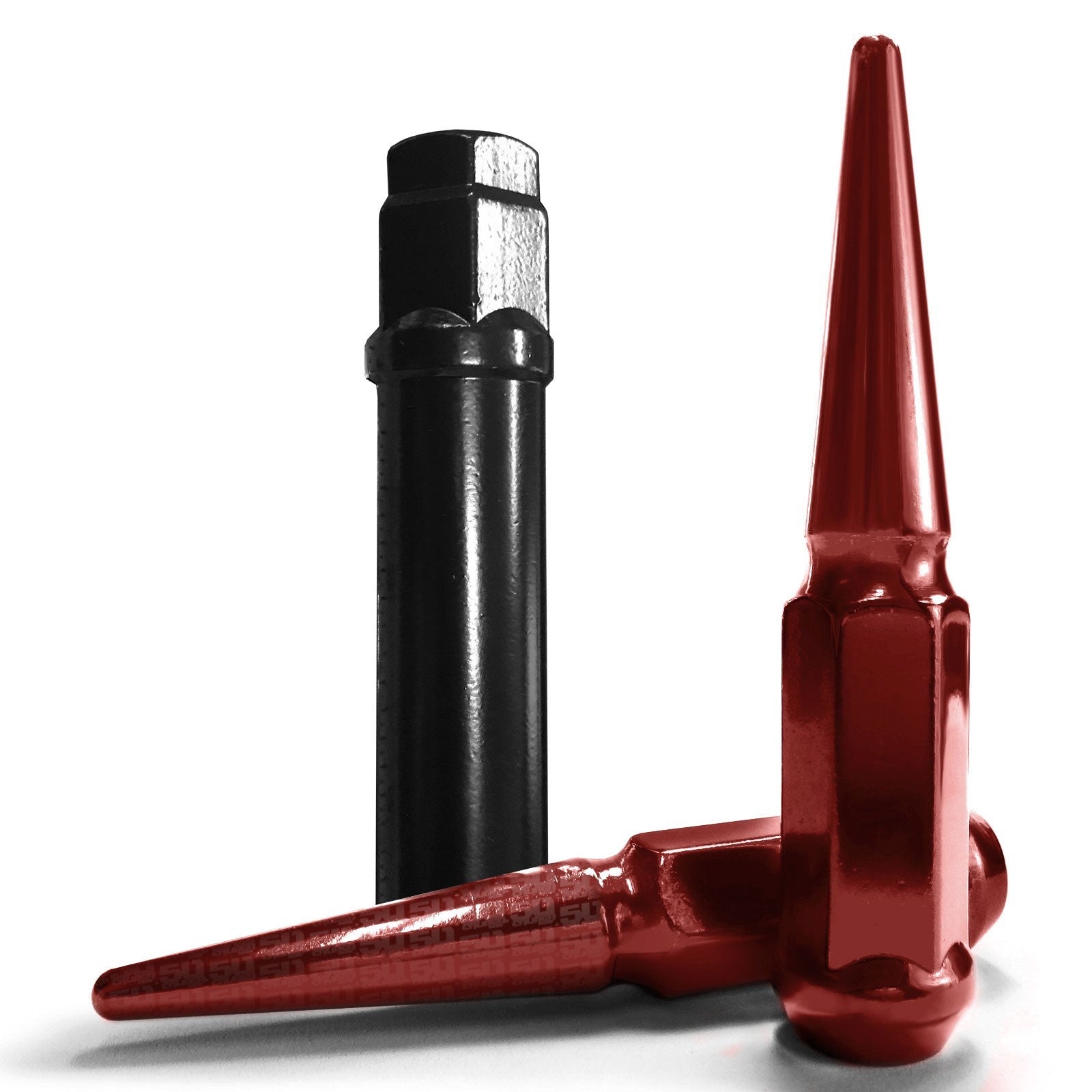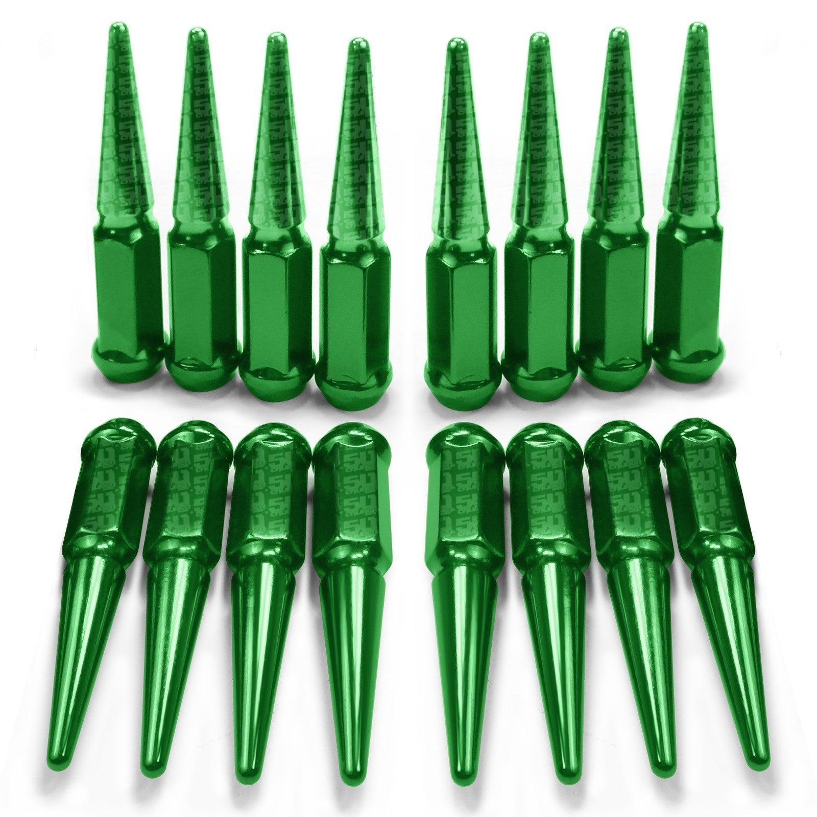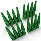50 Caliber Racing single piece, 3.5" long extended spike lug nuts are made from heat treated, hardened steel and feature a tapered 60 degree acorn seat. They are compatible with most aftermarket lug centric wheels without lug nut covers. An extra long socket key is included for easy installation/removal. Give your ATV or UTV an aggressive, off-road warrior look! Comes as a set of 16 lug nuts, with several colors to match any color scheme.