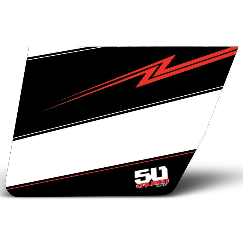 This sticker kit will fit our 50 Caliber RZR 2 doors. Made from high quality 3m material right here in Las Vegas, NV. The thick durable 3m material makes installation very simple for the fact that, if you put the sticker on crooked you can peel it right off and re stick it.