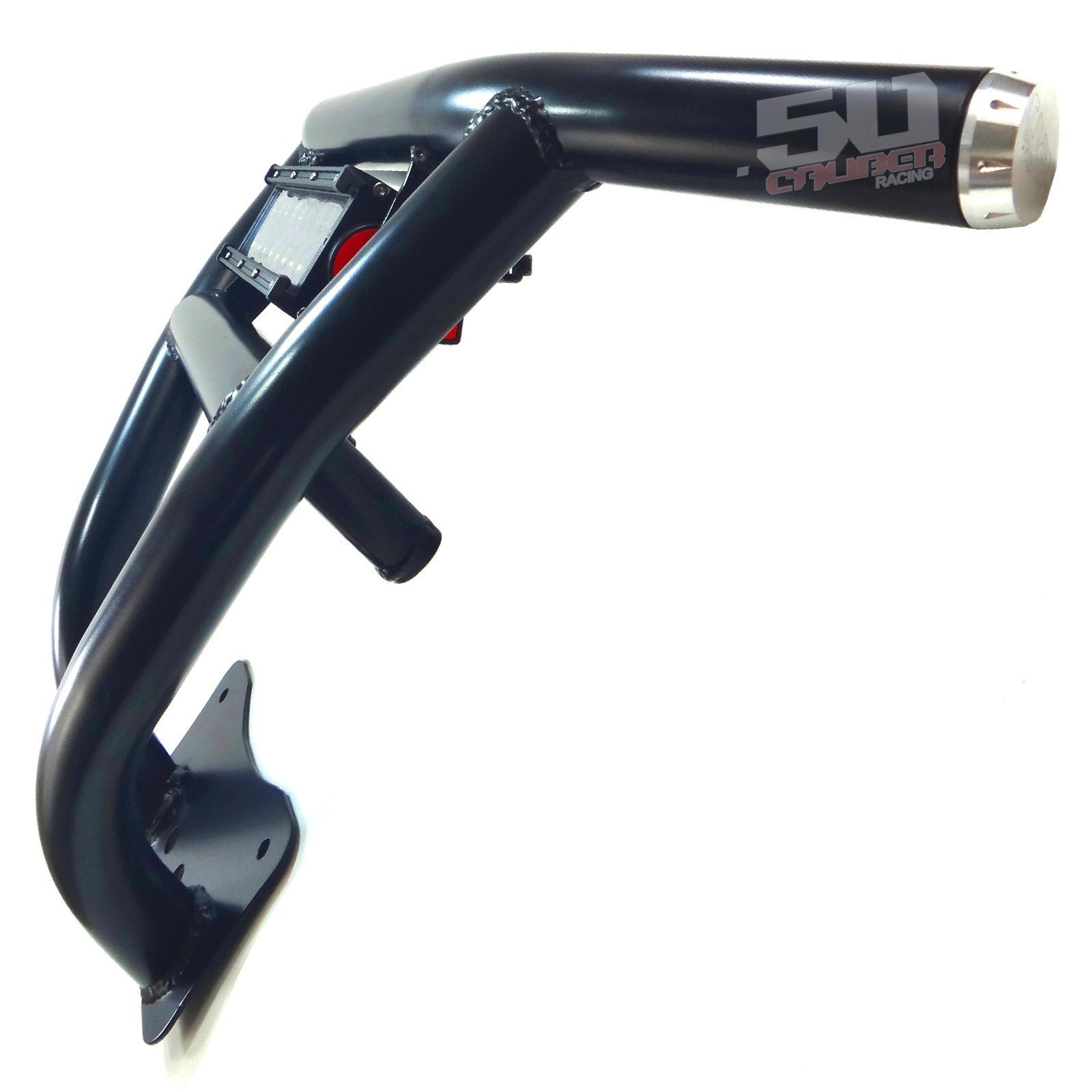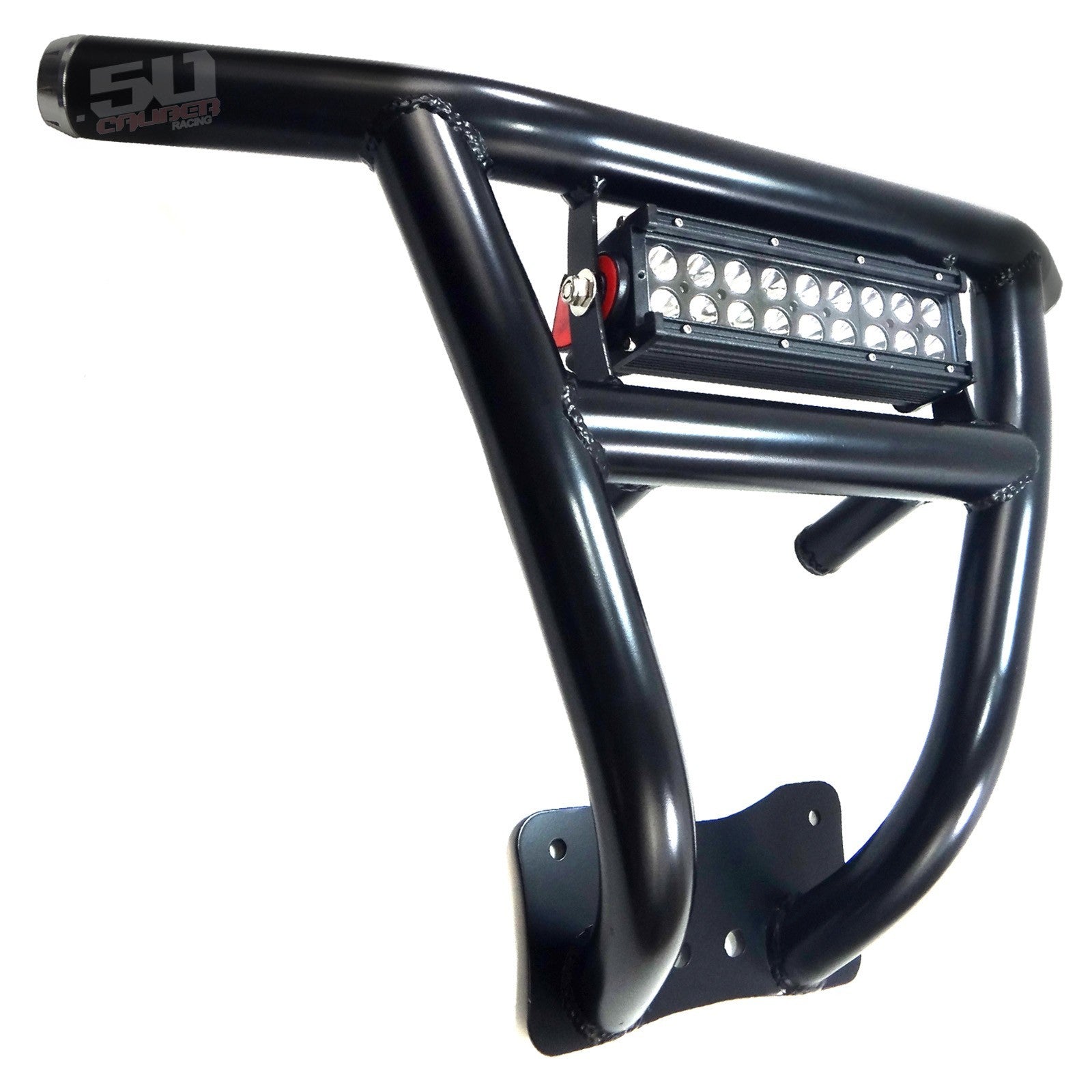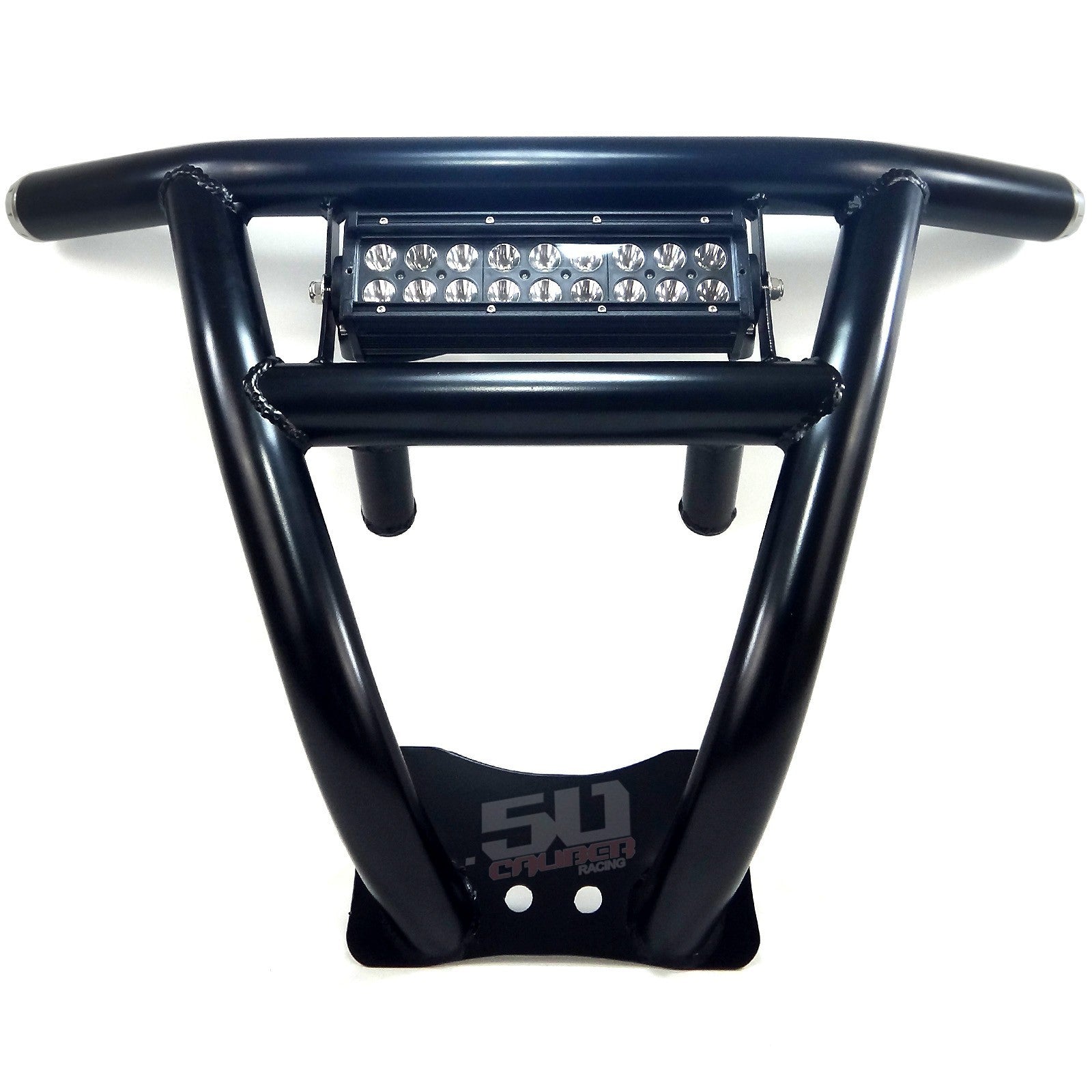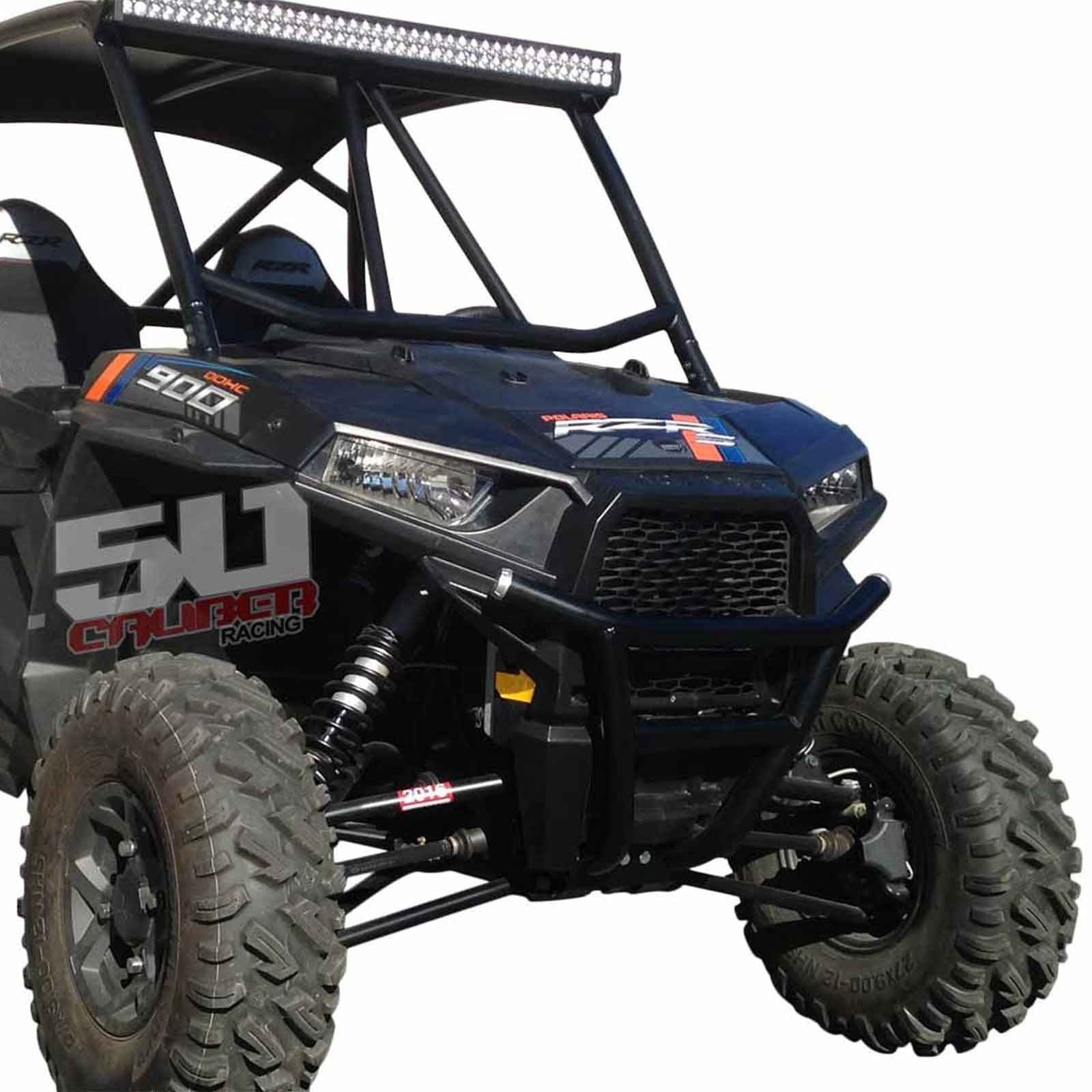 When you take your RZR off road, anything can happen. Protect your RZR with our heavy duty steel bumper. Constructed from .095 wall steel tubing, this bumper is strong yet lightweight. Hand welded joints for strength and 6 different powdercoat finish adds to your RZR’s custom look. Includes our premium CNC milled end caps. We designed these bumpers for our factory sponsored WORCS cars and run them in every race. They are stout and built to handle abuse. Bolt on design. 100% hand-built in the USA by 50 Caliber Racing. Front Bumper ONLY, does not include 11 inch Elite light bar part #5045-C .