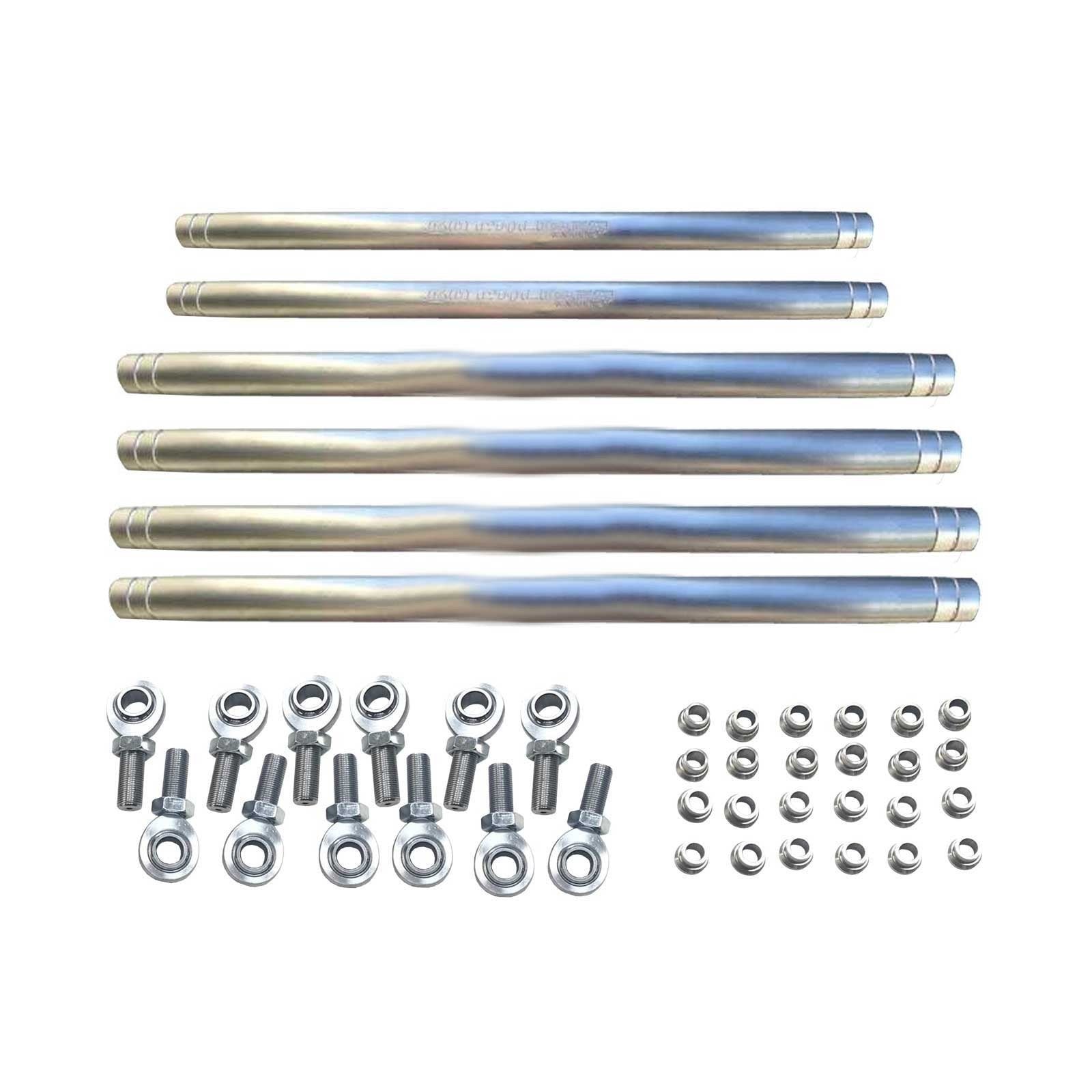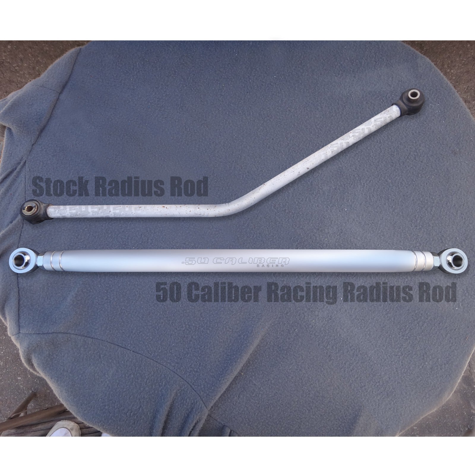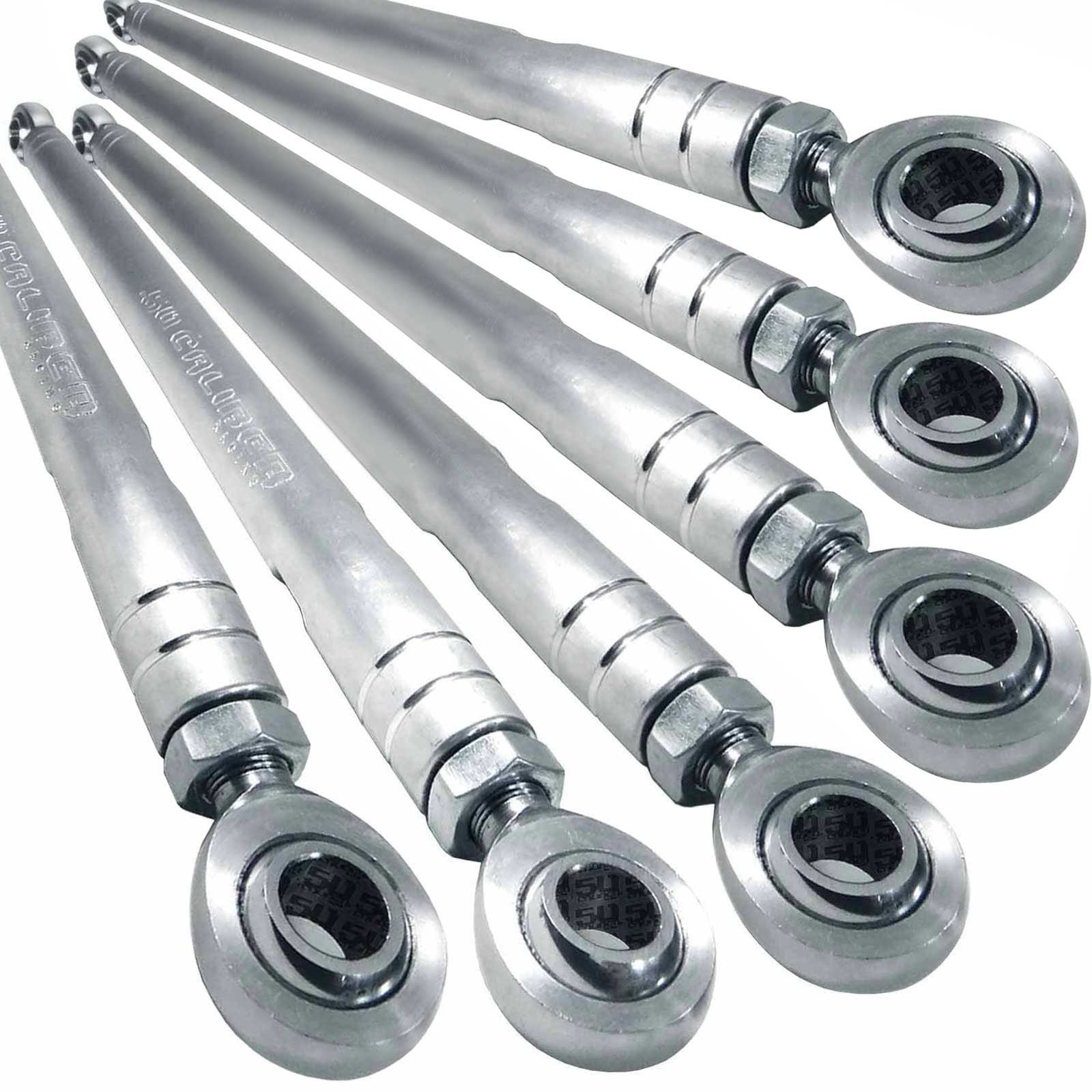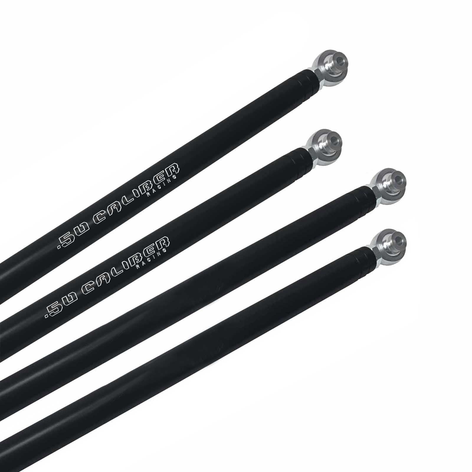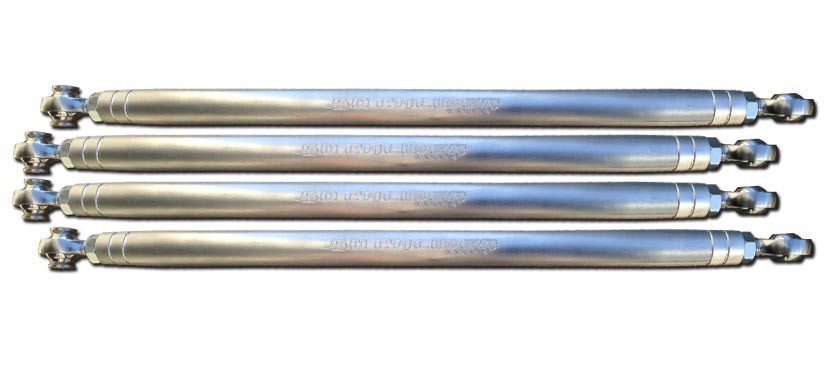 Heavy-duty CNC billet aluminum radius rods for Polaris RZR and Can-Am X3. Direct bolt-on replacement for stock radius rods.