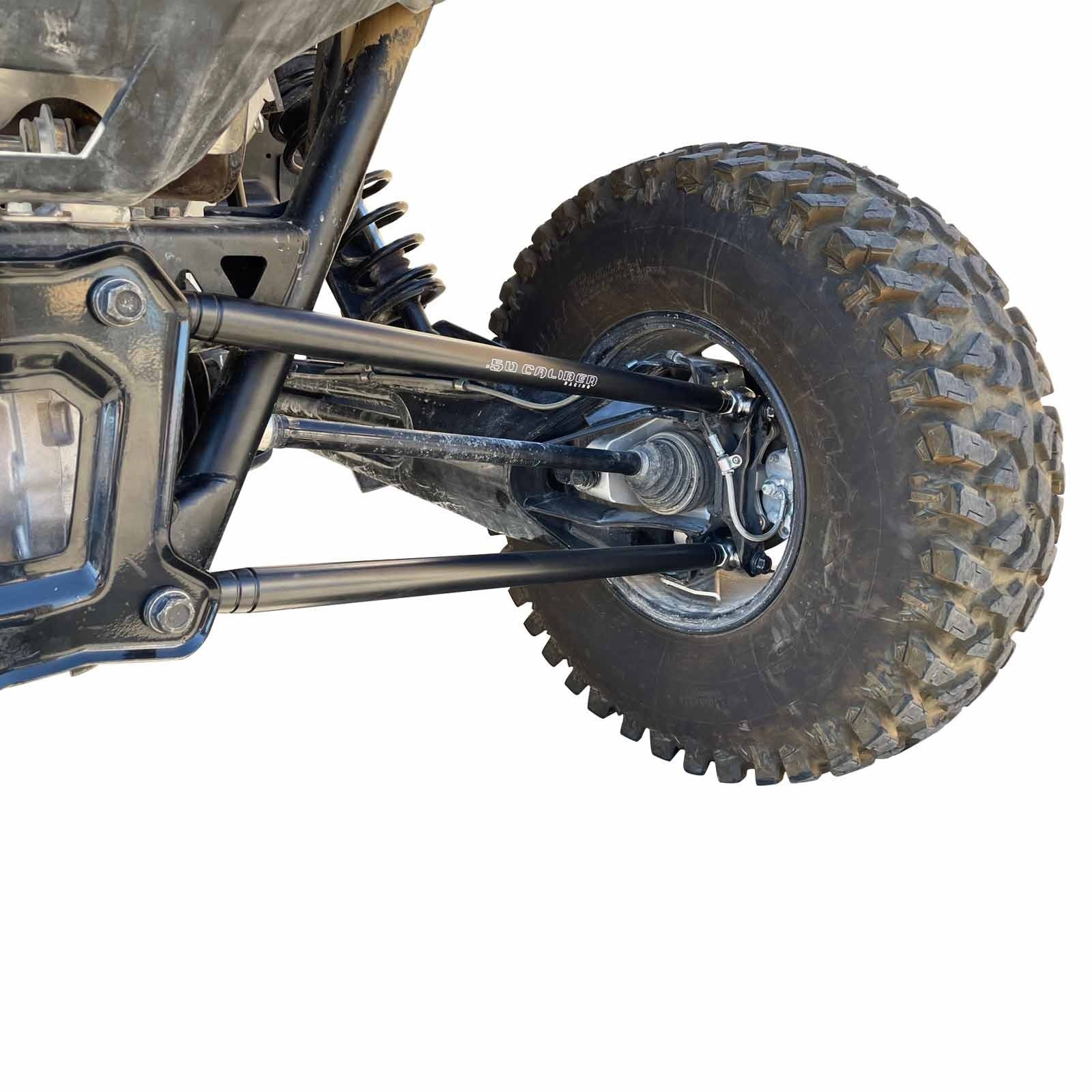 50 Caliber Racing's Heavy Duty Radius Rods were designed to address one of the biggest flaws in the Polaris rear suspension design. The stock rods are extremely weak and will fail for many of you Polaris customers out there. They just don't hold up to aggressive driving. When they fail they usually destroy your shock, bend the trailing arm, bend frame tabs, and wallow out the holes on your frame.